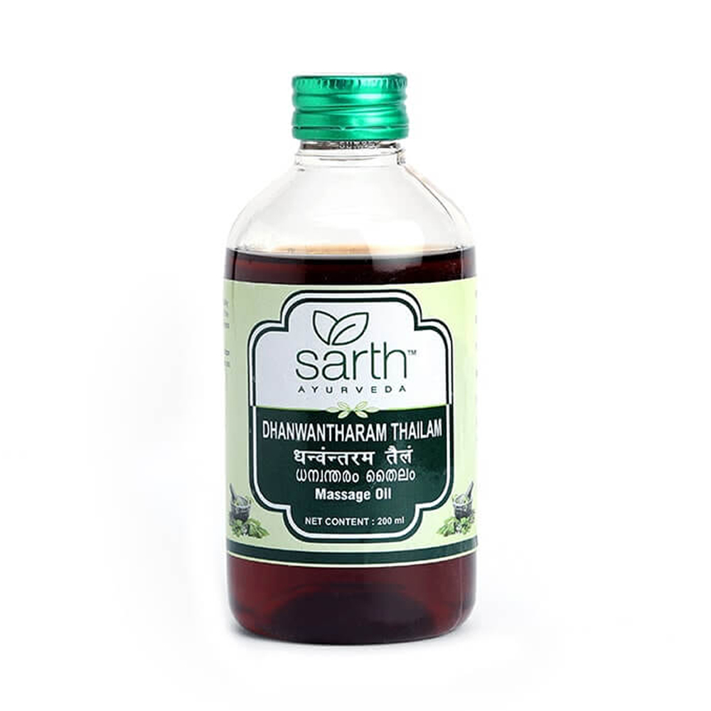 Dhanwantharam Thailam is a revered Ayurvedic medicated oil known for its effectiveness in treating Vata-related disorders. Widely used both externally (for massage) and internally (as prescribed), this oil supports the treatment of paralysis, hemiplegia, muscle wasting, postnatal recovery, and general body weakness. Rich in therapeutic herbs like Balamool, Yava, Kola, Kulatha, and Bilwa, this oil promotes vitality, muscle strength, and overall wellness.