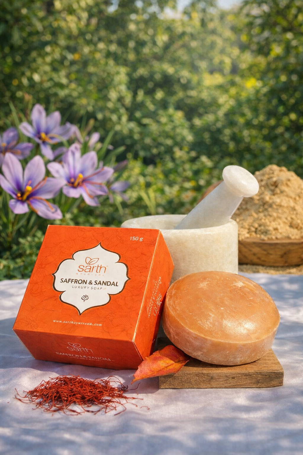 Coconut Oil (70 g), Virgin Coconut Oil (3 g), Castor Oil (3 g), Lye Solution (8 g), Saffron (1 g), Sandal Powder (2 g), Sandal Oil (1 g), Aloe Vera Gel (2 g), Purified Water (10 g)